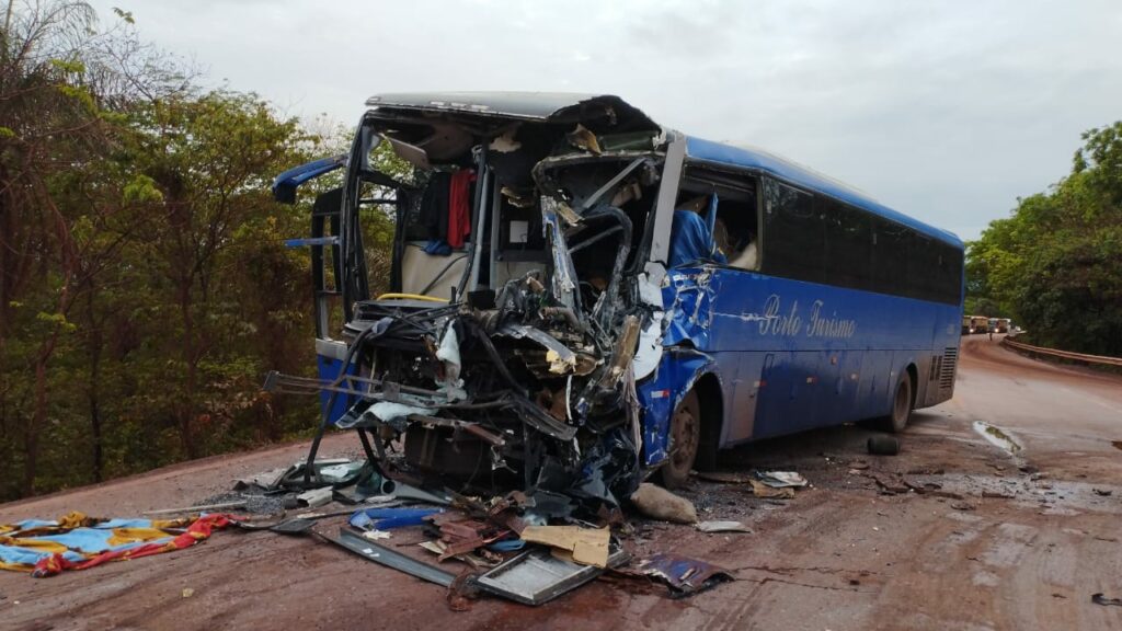 Segundo informações do condutor da carreta, ele fazia a conversão para sair da estrada vicinal que dá acesso a uma mineradora e quando já estava com o veículo totalmente na via, o ônibus surgiu em alta velocidade e colidiu contra uma das caçambas.